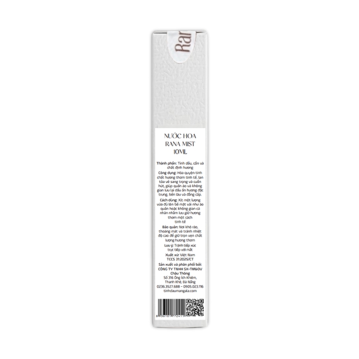 Dung tích 10ml nhỏ gọn cho phép bạn mang theo trong túi áo, túi xách và dùng khi cần “fresh lại” tâm trạng. Đặc biệt, mùi hương của Rana Mist khi bám trên quần áo tạo cảm giác rất sang và rất “sạch”, phù hợp cho bất kỳ ai muốn giữ hình ảnh chỉn chu suốt cả ngày.